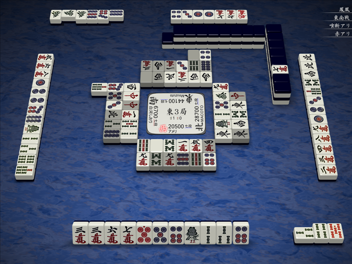 待ちのテンパイを入れ、軽くアガることに成功しました。