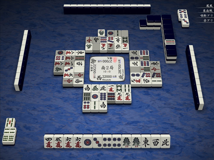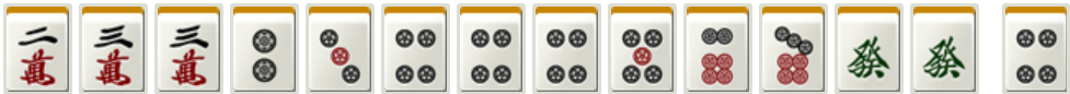 次は以下の図。ラス目の親で形式テンパイを果たしたところです。